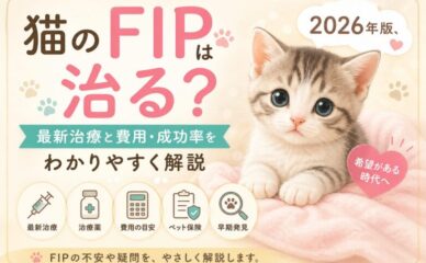 猫伝染性腹膜炎(FIP)は治る時代へ。最新の抗ウイルス治療・費用・成功率・ペット保険の対応について、実体験をもとにわかりやすく解説します。