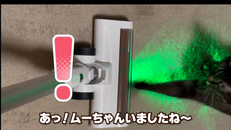 ヘッドの緑ライトが床のゴミをしっかり照らしてくれるので、