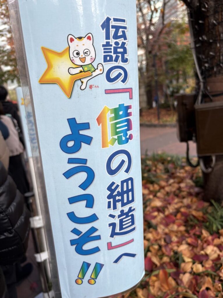 2時間くらい並んだら道路を挟んで「億の細道」と書かれているところが見えてきました