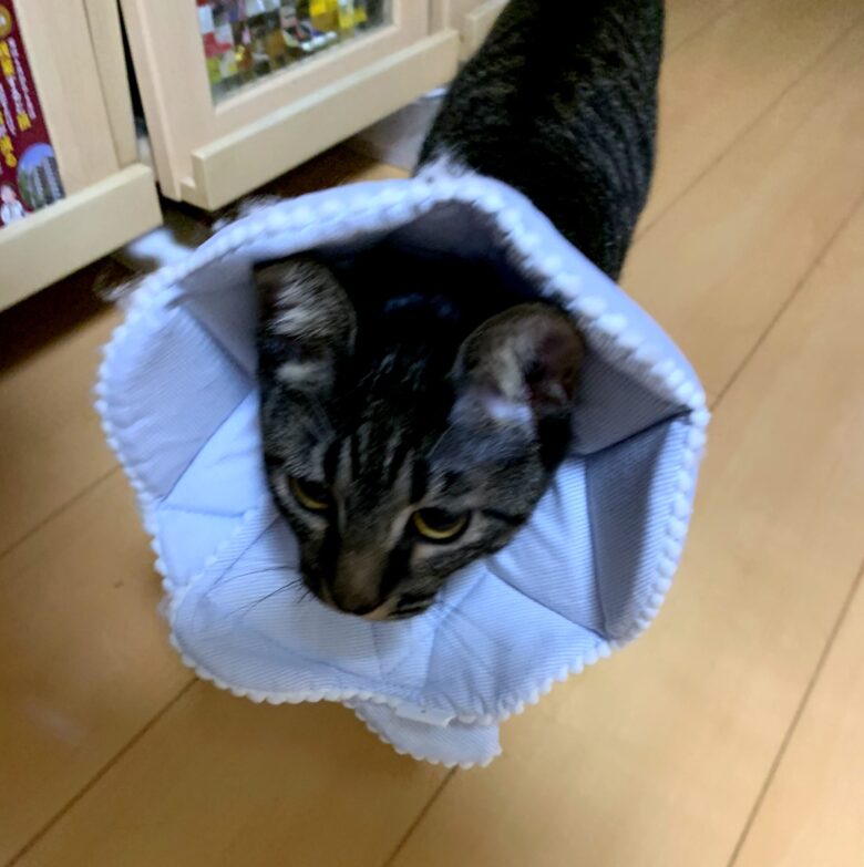 この写真はムーちゃんがソフトエリザベスカラーをつけているので